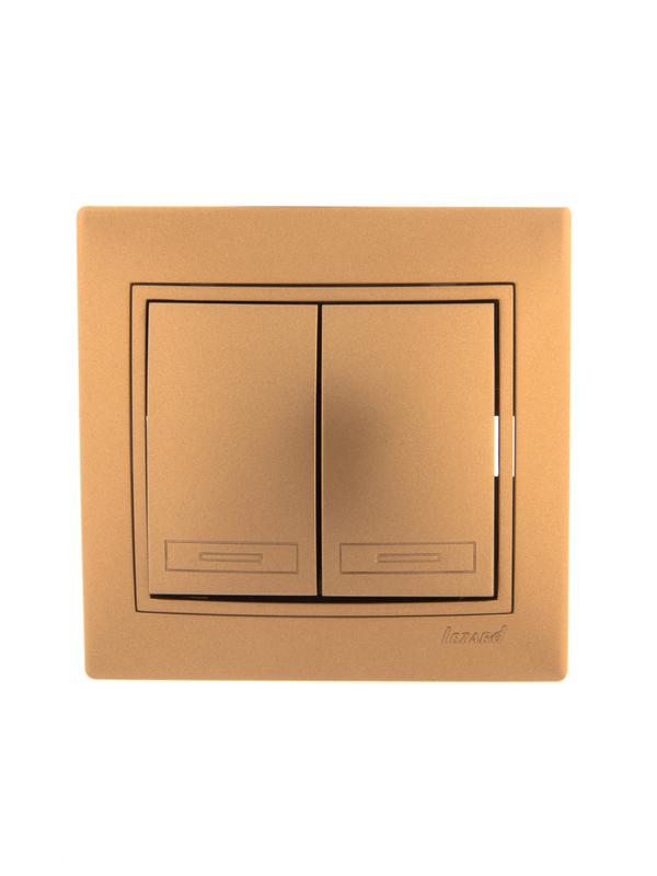 Выключатель 2-кл. СП Mira 10А IP20 со вставкой зол. метал. LEZARD 701-1313-101