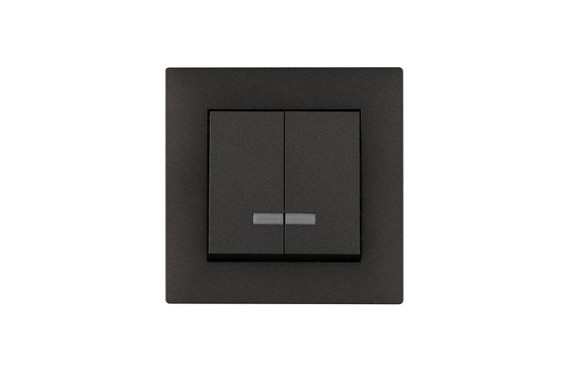 Выключатель 2-клав. с подсветкой Karea RIZZ STAR дым. металлик Makel 88050023