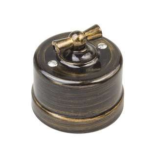 Выключатель проходной поворотный 1-кл. ОП Лизетта 10А IP20 ретро 2 полож. ABS-пластик бронз. Bironi B1-201-25