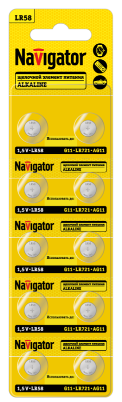 Элемент питания алкалиновый "таблетка" 95 667 NBT-10 (LR58 AG11 LR721 BP10) (блист.10шт) Navigator 95667