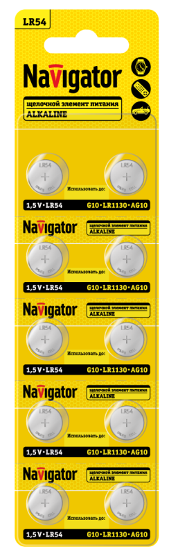 Элемент питания алкалиновый "таблетка" 95 671 NBT-14 (LR54 AG10 LR1130 BP10) (блист.10шт) Navigator 95671