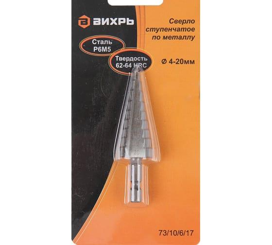 Сверло ступенчатое по металлу 4-6-8-10-12-14-16-18-20мм P6M5 шестигранный хвостовик Вихрь 73/10/6/17