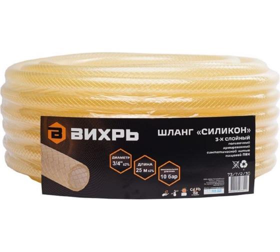 Шланг поливочный "Силикон" трехслойный армир. 3/4дюйм 25м прозр. Вихрь 73/7/2/30