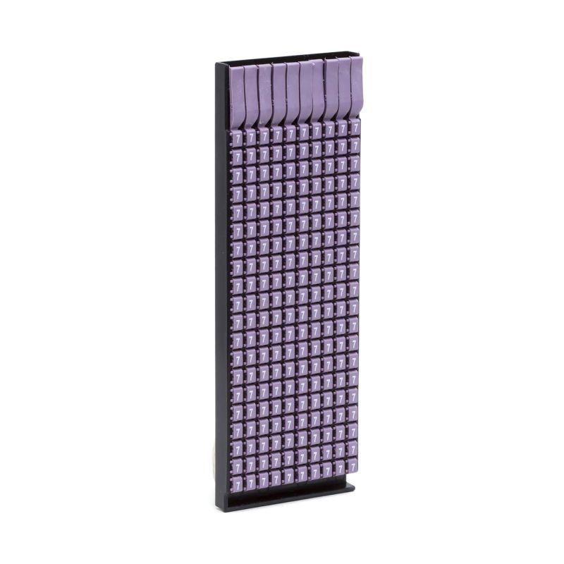 Ручная маркировка системы MARK 3 для маркировки проводов без разъединения электрической цепи из полиамида 6.6. Температура эксплуатации от –40 до +100 °С. Боковые штифты надежно фиксируют соединение друг с другом и позволяют добиться точного выравнивания маркеров. Цвет маркеров соответствует международной кодировке. Символ "7" белым цветом на фиолетовом маркере для сечения провода 4-6 мм2. 160 маркеров в упаковке.