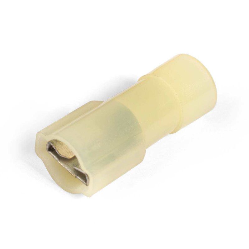 • Предназначены для формирования быстроразъемных, полностью изолированных соединений многопроволочных медных проводов • Материал изоляции: самозатухающий нейлон. Не содержит галогенов • Термостойкость изоляции: 105 °C • Материал разъема: латунь марки Л63 • Покрытие разъема: электролитическое лужение • Максимальное напряжение: 400 В • Особенности конструкции: • полностью изолированная конструкция • исполнение «Easy Entry»: цельнолитой нейлоновый корпус имеет конусообразное сужение, обеспечивающее беспрепятственное заведение многопроволочной медной жилы • поперечные засечки на внутренней поверхности трубной части разъемов увеличивают механическую прочность соединения с жилой • каждая клемма имеет конструктивный фиксатор замкового типа для прочного механического соединения с разъемом «папа» • Комплементарны разъемам РПИ-П и выходам типа «папа» на клеммах электрических устройств • Опрессовка проводника поверх изолирующего корпуса