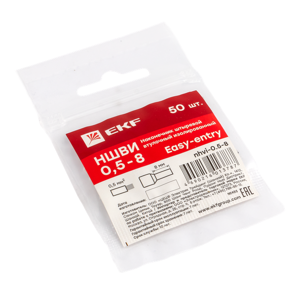 Наконечник штыревой втулочный изол. НШвИ 0.5-8 (уп.50шт) EKF nhvi-0.5-8