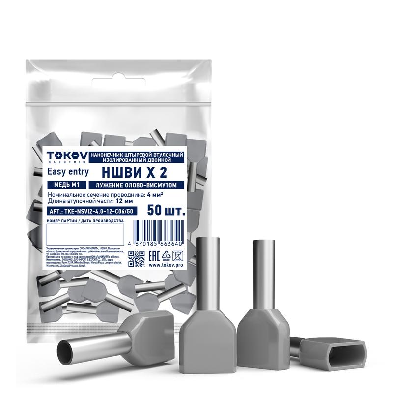 Наконечник штыревой втулочный изолированный двойн. НШВИ(2) 4.0-12 TOKOV ELECTRIC TKE-NSVI2-4.0-12-C06/50