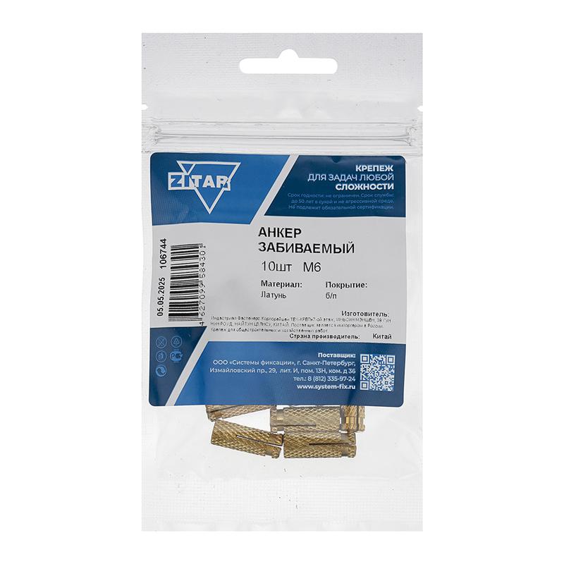 Анкер забивной М6 латунь (пакет) (уп.10шт) Zitar 106744