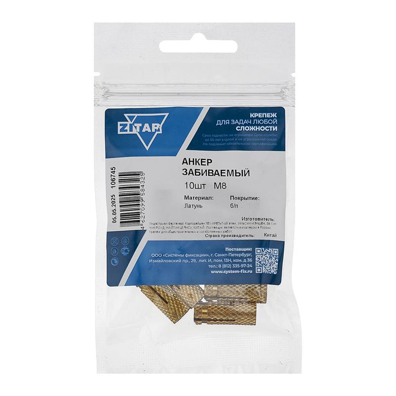 Анкер забивной М8 латунь (пакет) (уп.10шт) Tech-Krep/Zitar 106745
