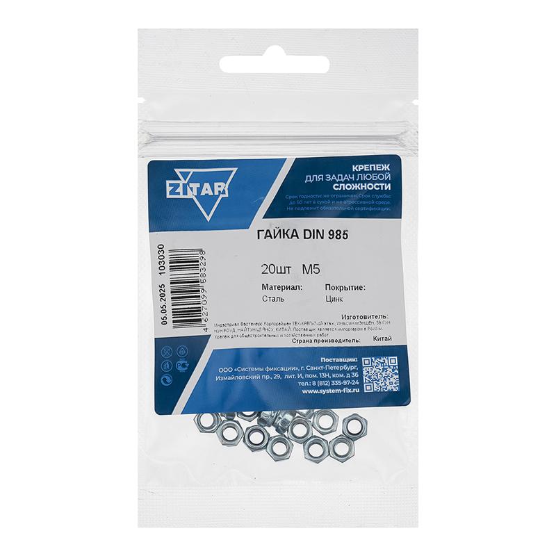 Гайка самоконтрящаяся М5 DIN 985 оцинк. (уп.20шт) Zitar 103030