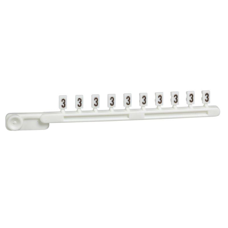 Лента маркировки клеммников Schneider Electric с цифрой 3, набор - 10 шт. Цвет фона - белый; маркировка - 3; цвет маркировки - черный; размер - 4.5х2.7 мм, в комплекте - 25 шт.