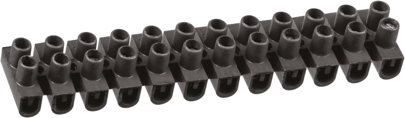 • НАЗНАЧЕНИЕ Винтовой клеммный зажим предназначен для электрического соединения медных и алюминиевых проводов с сечением до 6,0 мм2 в электрических цепях постоянного тока напряжением 220-240 В и переменного тока напряжением 380 В с частотой 50 Гц. • ОБЛАСТЬ ПРИМЕНЕНИЯ Клеммники винтовые применяют для подключения к электропроводке люстр, спотов и других светотехнических приборов, а также используются в электрических щитках и распаячных коробках. • ПРИНЦИП ДЕЙСТВИЯ Клемная колодка состоит из 12 парных зажимов и легко режется на блоки с меньшим числом клеммных пар. Подключение электрических проводников осуществляется при помощи прижатия проводов винтами из оцинкованной стали. Материал корпуса колодки – белый или черный пластичный полиэтилен. Материал металлической планки – латунь. • ДОПОЛНИТЕЛЬНЫЕ ПРИНАДЛЕЖНОСТИ ИЛИ АКССЕСУАРЫ В стандартную комплектацию входит само изделие