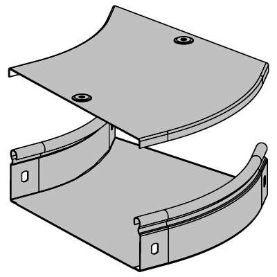 Аксессуары системы "S5 Combitech" позволяют строить кабельные трассы сложного конструктива, с многочисленными поворотами и углами. Один из широко используемых аксессуаров – угол СРО горизонтальный. Он применяется для поворота кабельной трассы в горизонтальной плоскости на определенный угол. Данный угол СРО необходим для осуществления поворота на 45°. Плавный изгиб аксессуара предупреждает повреждение кабеля при прокладке. При использовании вместе с крышкой достигается высокий уровень пыле- и влагозащиты – IP 44. Исполнение – "сталь, оцинкованная по методу Сендзимира". Толщина металла - 0,8 мм, высота – 50 мм, ширина – 50 мм, внутренний радиус – 150 мм.