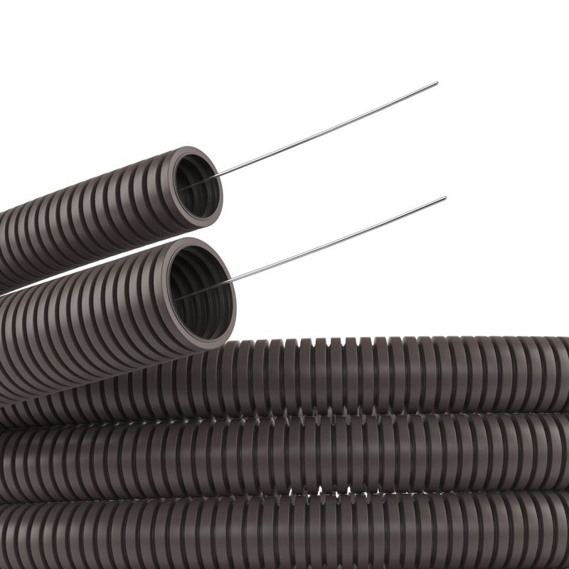 Труба гофрированная ПА 6 d12мм dвнутр.12.2мм dвнешн.15.8мм с протяжкой ПВ-0 темн. сер. (уп.50м) DKC PA611216F0