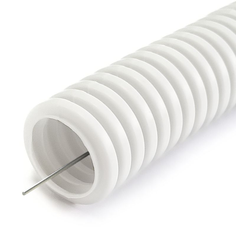 Труба гофрированная ПЛЛ легкая d25мм с протяжкой безгалоген. (HF) (НГ) бел. (уп.50м) Промрукав PR02.0216