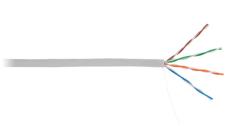 Кабели CCA-UU004-5E-PVC-GY и CCA-UU004-5E-PVC-BL содержат 4 витые пары сплошных алюминиевых проводников, плакированных чистой медью (ССА). Кабель выполнен в неэкранированном исполнении, и является экономичным решением, при этом полностью соответствует заявленной категории 5e, обеспечивая передачу данных со скоростью 1 Гбит/с. Предназначен для внутренней прокладки. Поставляется в картонных коробках, по 305 м. Для удобства транспортировки и лучшей сохранности, две коробки с кабелем дополнительно объединены в одну общую транспортную картонную коробку.