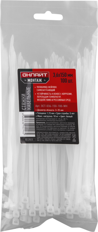 Хомут 90 296 OCT-036-150-100-WH (уп.100шт) ОНЛАЙТ 90296