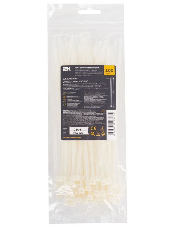 Хомут кабельный 3.6х200 нейл. бел. (уп.100шт) IEK UHH31-D036-200-100