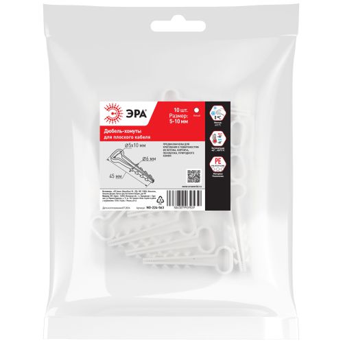 Дюбель-хомут 5-10мм для плоского кабеля NO-224-563 бел. (уп.10шт) Эра Б0066250