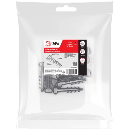 Дюбель-хомут 6-12мм для плоского кабеля NO-225-223 черн. (уп.10шт) Эра Б0066301