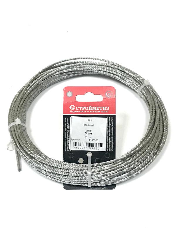 Трос стальной 3.0мм DIN 3055 цинк (уп.20м) подвес СТРОЙМЕТИЗ 4140060