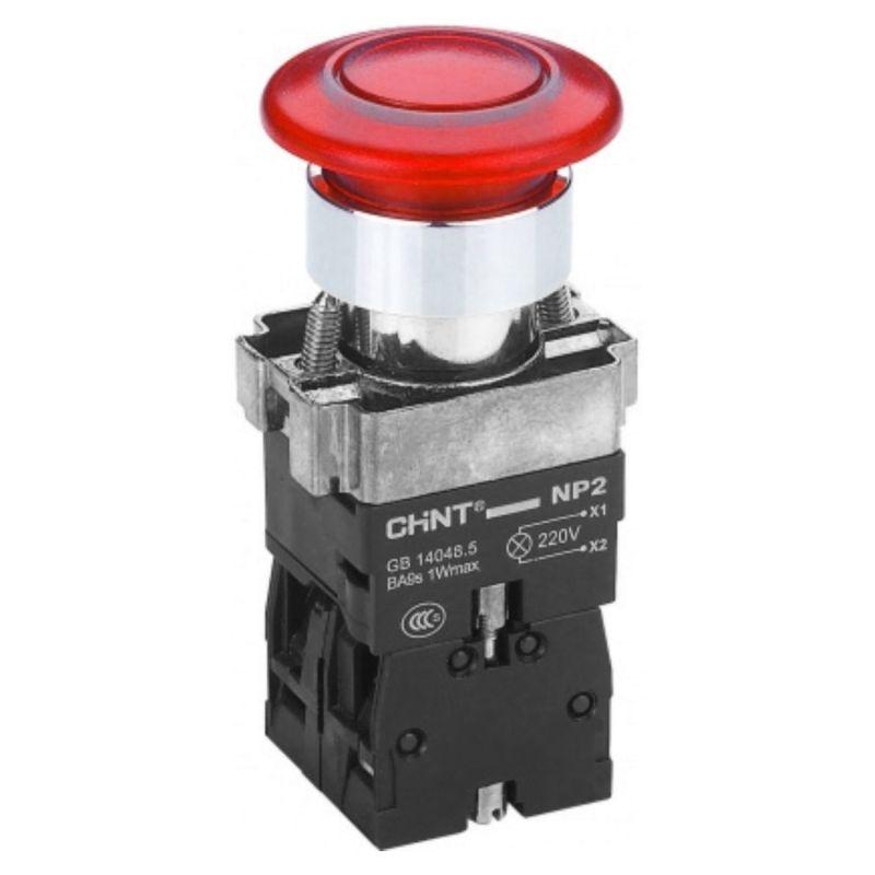 Кнопка управления "Грибок" NP2-BW4462 d40мм 1НЗ IP40 с самовозвратом с подсветкой красн. CHINT 575495