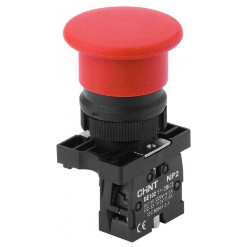 Кнопка управления "Грибок" NP2-EC42 d40мм (2) 1НЗ IP40 с самовозвратом без подсветки красн. CHINT 574820
