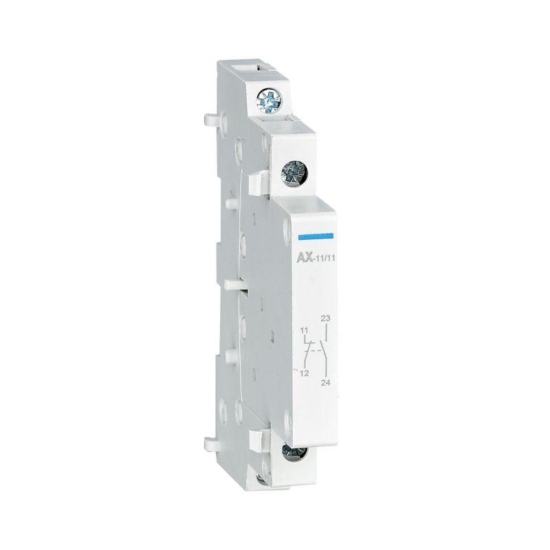 Блок дополнительных контактов серии AX-X1 предназначен для применения с модульными контакторами серии NCH8-M и расширения функциональных возможностей контактора. Контакты блока AX-X1 меняют свое состояние при подаче или снятии напряжение на катушке управления контактора. Основные характеристики: Количество контактов – 1НО+1НЗ Степень загрязнения – 2 Степень защиты – IP20 Ширина – 9 мм Монтаж – на симметричную DIN-рейку 35 мм