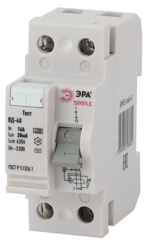 Выключатель дифференциального тока (УЗО) 2п 16А/30мА ВД-40 (электронное) SIMPLE-mod-41 ЭРА Б0039261