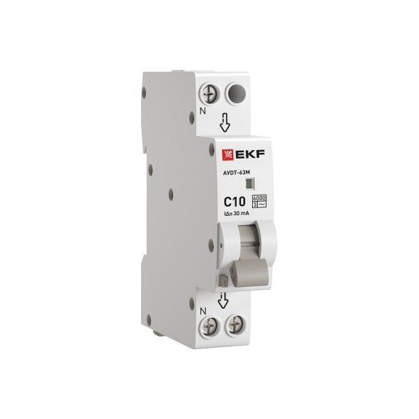 Выключатель автоматический дифференциального тока 1мод. C 10А 30мА тип AC 6кА АВДТ-63М электрон. PROxima EKF DA63M-10-30