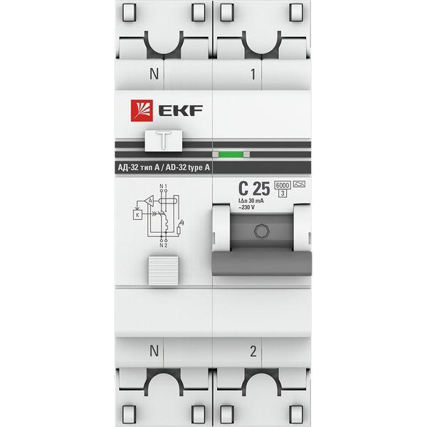 Выключатель автоматический дифференциального тока 2п (1P+N) C 25А 30мА тип A 6кА АД-32 защита 270В электрон. PROxima EKF DA32-6-25-30-a-pro