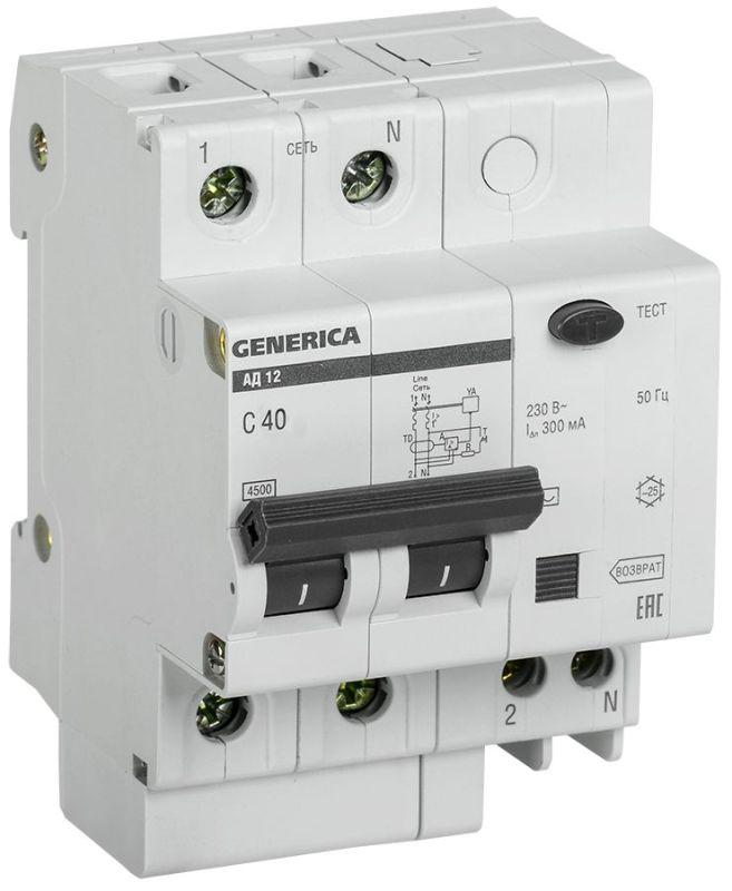 Выключатель автоматический дифференциального тока 2п 40А 300мА АД12 GENERICA MAD15-2-040-C-300
