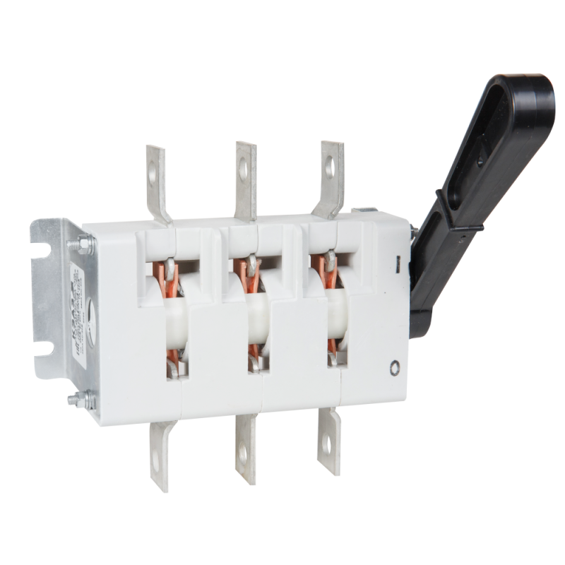 Выключатель-разъединитель 3 полюсный на номинальный ток 250 А, в котором установлена несъемная рукоятка.