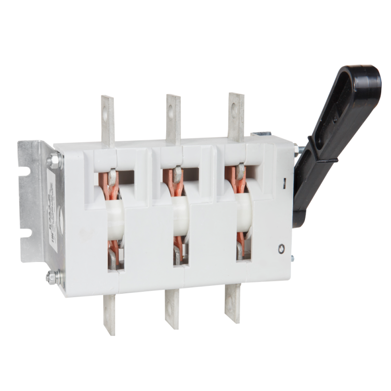 Выключатель-разъединитель 3 полюсный на номинальный ток 400 А, в котором установлена несъемная рукоятка.