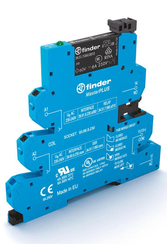 Модуль интерфейсный (сборка 34.51.7.024.0010 + 93.66.7.024) электромеханич. реле MasterPLUS 1CO 6А 24В AC/DC IP20 безвинт. клеммы Push-in FINDER 396100240060
