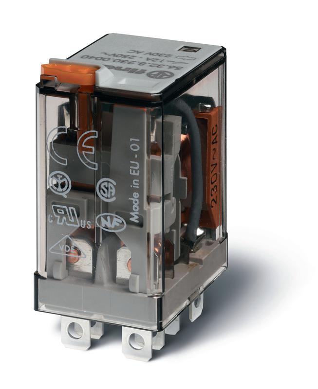 Реле миниатюрное силовое электромеханич. монтаж в розетку или наконечники Faston (4.8х0.5мм) 2CO 12А AgNi 24В DC RTI FINDER 563290240000