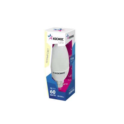 Лампа светодиодная CW 5Вт свеча на ветру 3000К тепл. бел. E14 420лм 220-240В КОСМОС Lksm_LED5wCWE1430