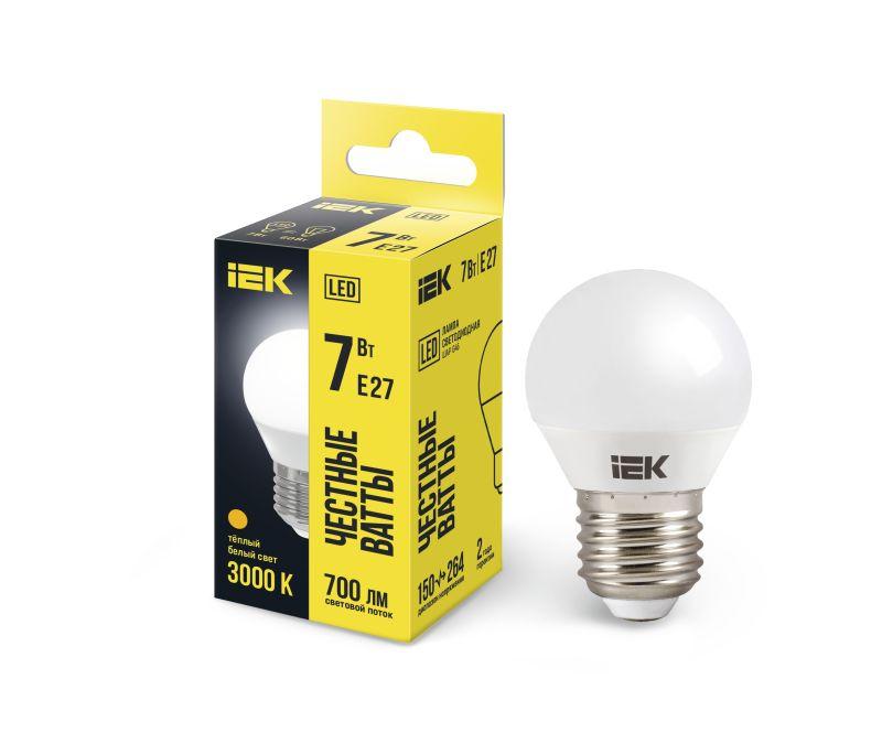 Лампа LED G45 шар 7Вт 230В 3000К E27 IEK. Светодиодные лампы предназначены для использования в осветительных приборах наружного и внутреннего освещения объектов промышленного, коммерческого и бытового назначения. Соответствуют требованиям Технических регламентов Таможенного союза ТР ТС 004/2011, ТР ТС 020/2011, МЭК 62560, Постановления Правительства РФ от 10.11.2017 № 1356.