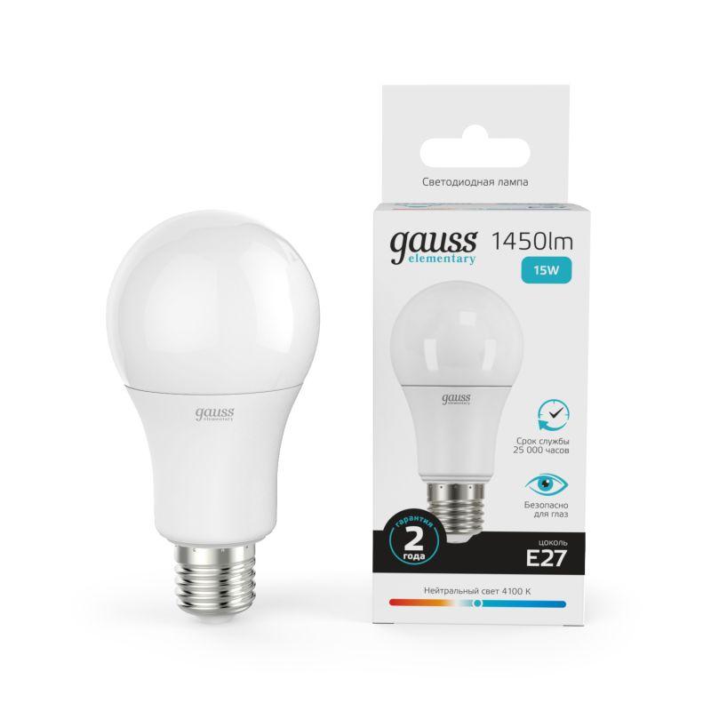 Лампа светодиодная Elementary 15Вт A60 грушевидная 4100К нейтр. бел. E27 1450лм GAUSS 23225