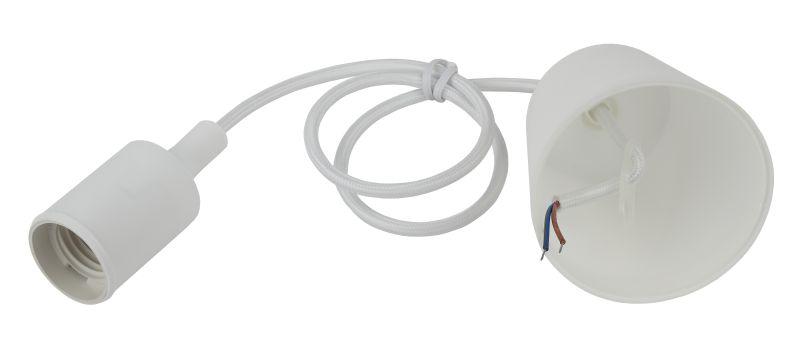 патрон с подвесом, длина провода 80 см, изготавливается из термостойкого пластика, материал химически устойчивый к агрессивным средам, обладает высокой прочностью и теплостойкостью; не обладает способностью выдерживать высокие температуры нагрева, поэтому его чаще всего используют для ламп накаливания мощностью не более 60 Вт. Есть регулировка длины шнура.