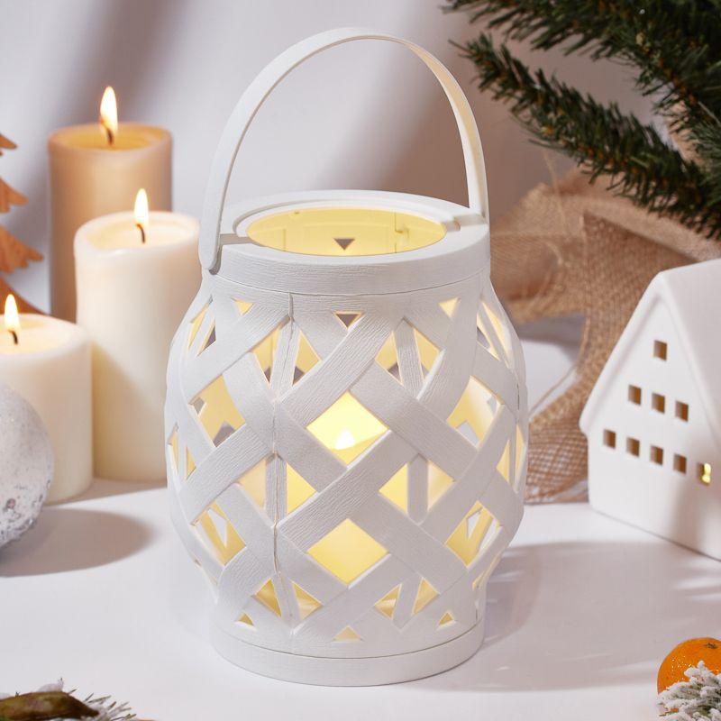 Фонарь декоративный 14х14х16.5см тепл. бел. со свечкой корпус плетеный бел. Neon-Night 513-057
