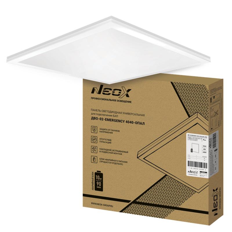 Светильник светодиодный ДВО-02-EMERGENCY 4040-ОПАЛ 40Вт 4000К 595х595х25мм без БАП-10W90 универс. панель NEOX 4690612053035