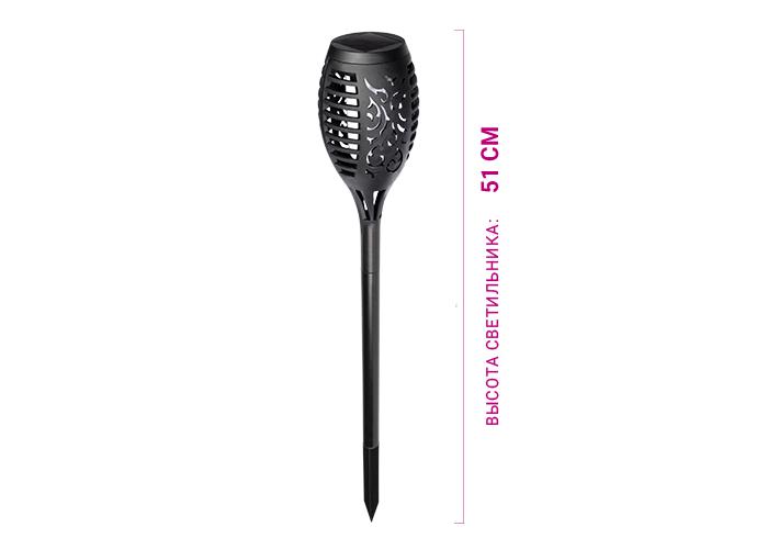 Светодиодный ландшафтный светильник на солнечной батарее, устанавливается в грунт. Предназначен для декоративной подсветки садовых и дачных участков, цветников, дорожек. Автоматическое включение/выключение при наступлении темного/светлого времени суток (датчик освещенности). Время непрерывной работы при полностью заряженном аккумуляторе 5 часов. Время полного заряда аккумулятора: 8-10 часов. Высота светильника в собранном виде 51 см.