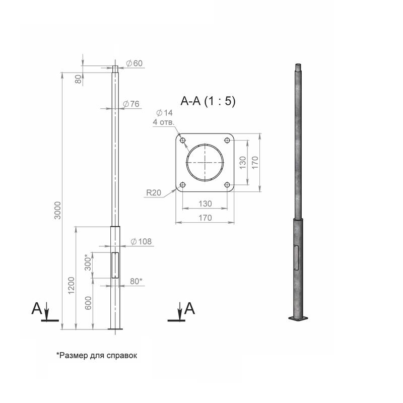 Опора ОП1ф-3.0-108/76/т60-(К170-130-4х14)-по 9005 муар Пересвет В00007134
