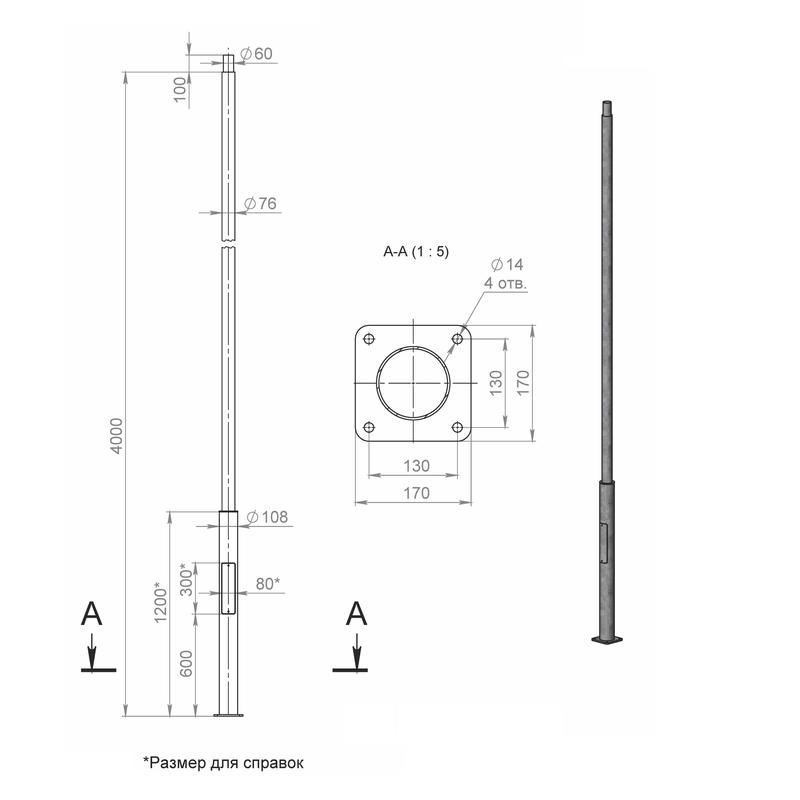 Опора ОП1ф-4.0-108/76/т60-(К170-130-4х14)-по 9005 муар Пересвет В00007136