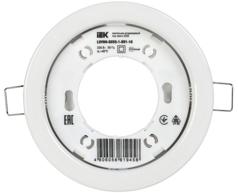 Светильник встраиваемый под лампу GX53 бел. (уп.10шт) IEK LUVB0-GX53-1-K01-10