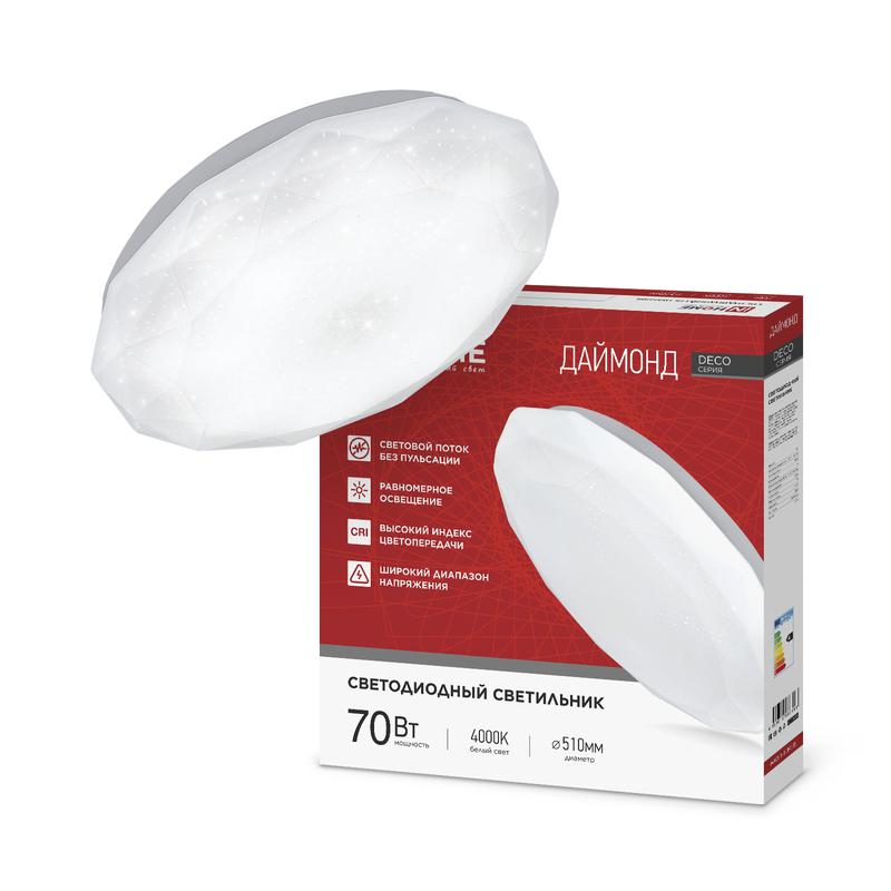 Светильник светодиодный DECO ДАЙМОНД 70Вт 4000К 6300лм 230В 510х70мм IN HOME 4690612063416