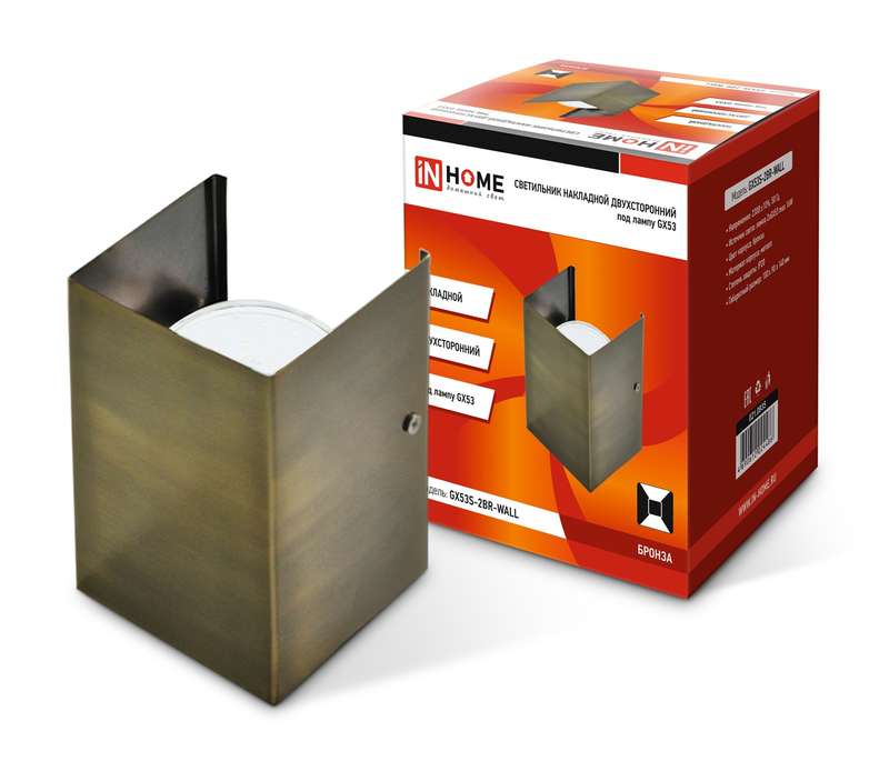 Светильник GX53S-2BR-WALL GX53 230В накладной двусторон. подсветка бронз. IN HOME 4690612024486