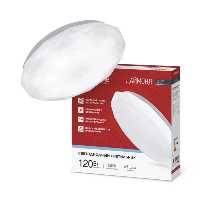Светильник светодиодный DECO ДАЙМОНД 120Вт 6500К 12600лм 230В 496х85мм IN HOME 4690612062242