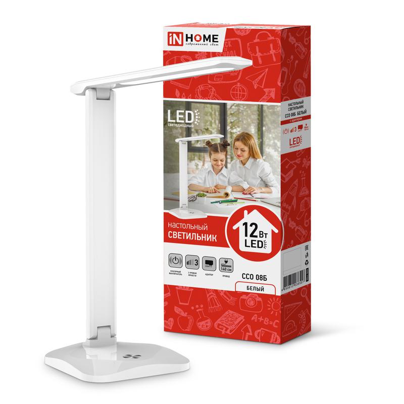 Светильник светодиодный настольный ССО 08Б 12Вт 3000-6500К 600лм сенсор-диммер с адаптером бел. IN HOME 4690612036557